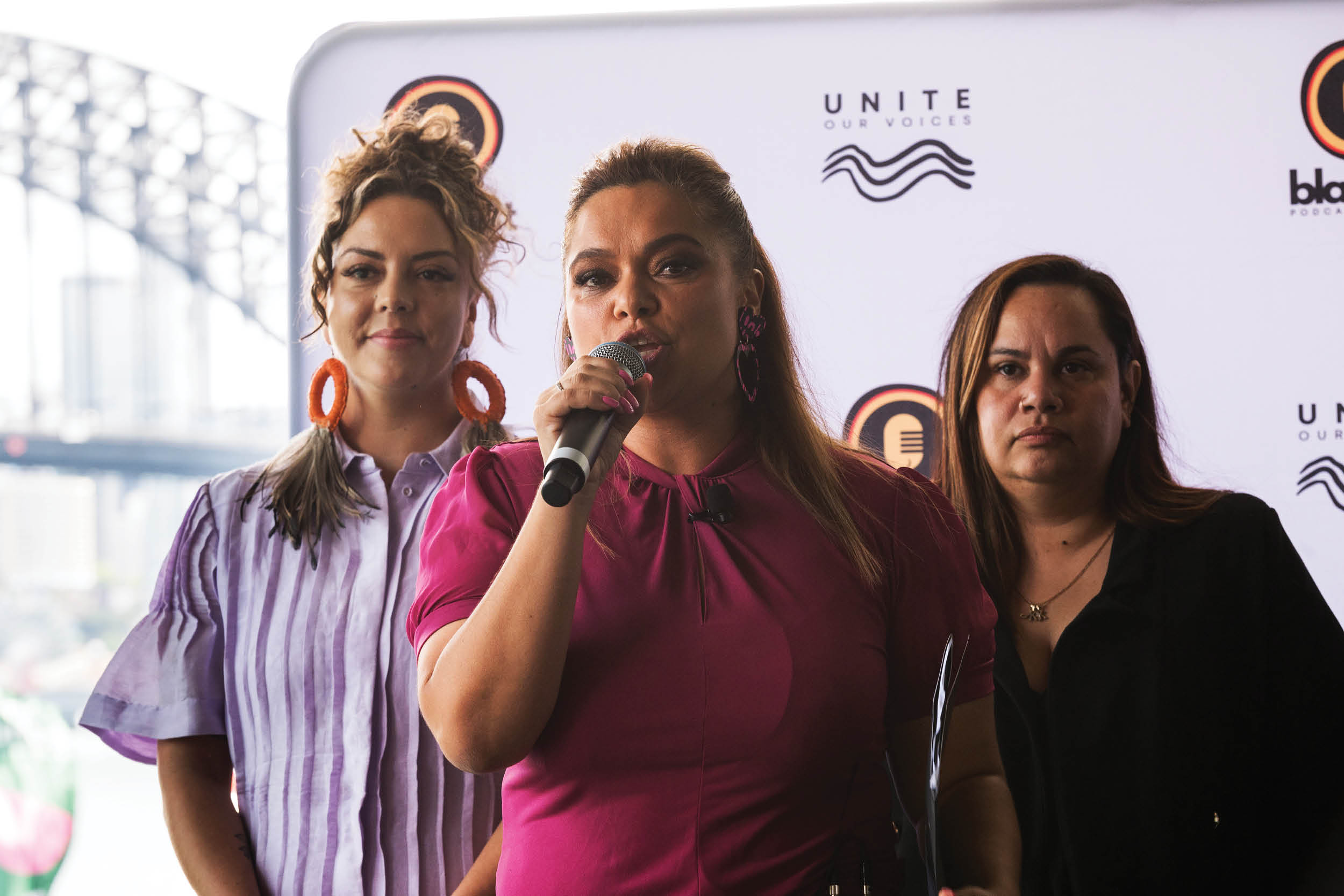 Mundanara Bayles speaking at the launch of the BlakCast Podcast Network in Sydney, on Gadigal Country.
