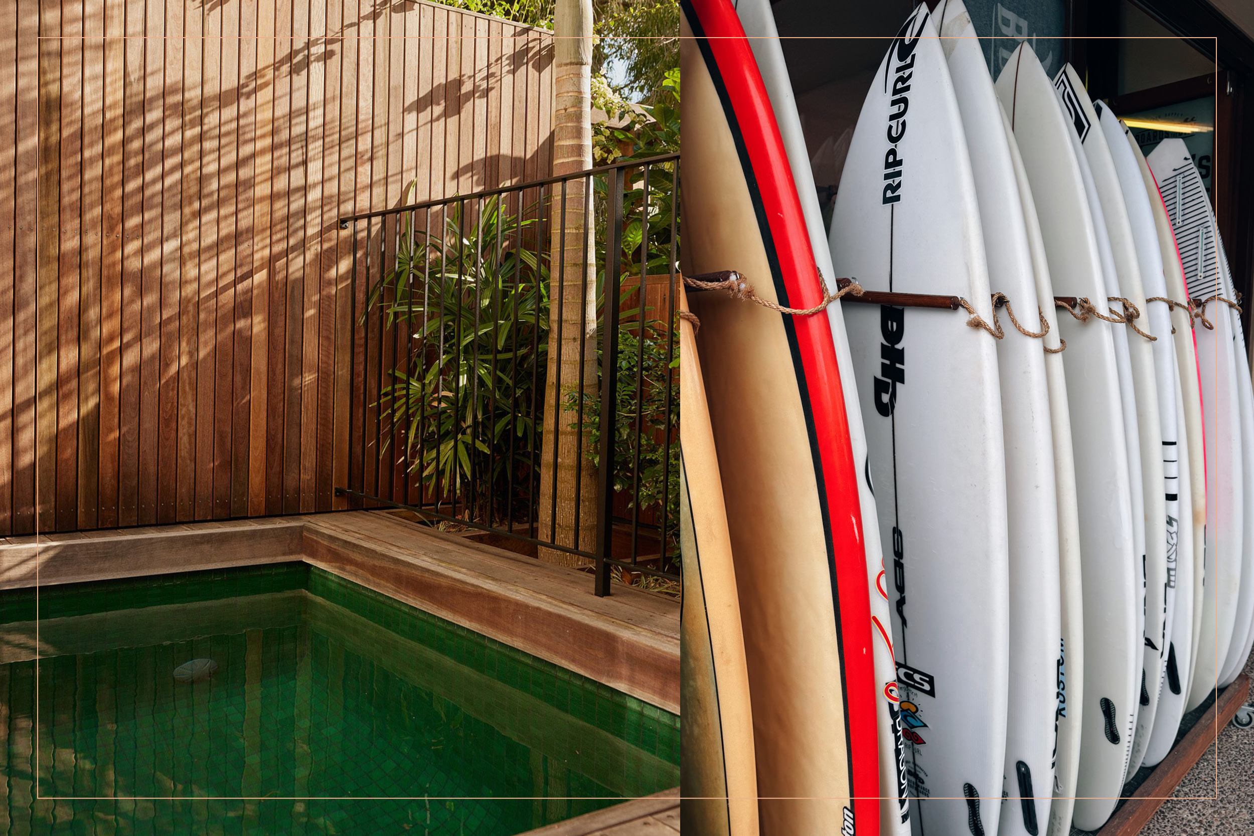 “The name 28 Degrees reflects its latitude from Byron Bay to Norfolk Island, where I grew up,” says Garske “That’s why you’ll find artwork by Sue Pearson, whose features Norfolk pines and native birds, capturing the spirit of my island home.”